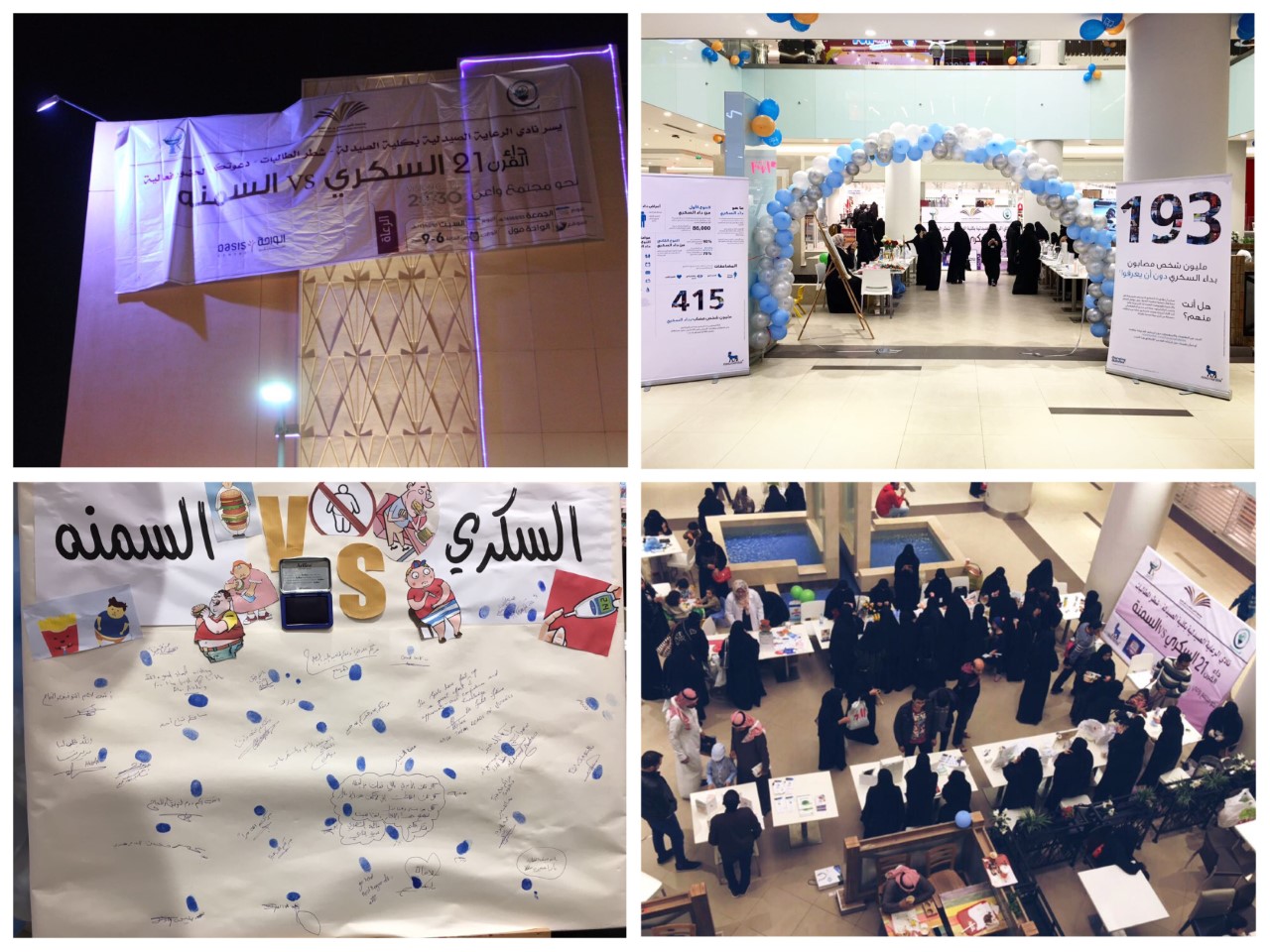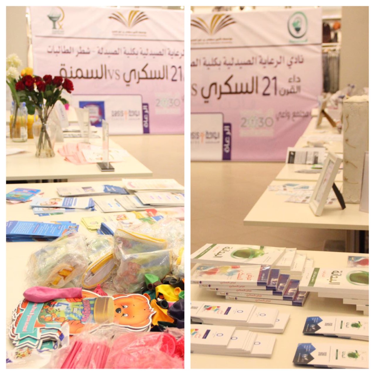 تفعيلاً لأنشطة خدمة المجتمع الذي تقوم به كلية الصيدلة -شطر الطالبات- ومن منطلق رؤيه ٢٠٣٠ نحو مجتمع واعي ومثقف تم تنظيم برنامج صحي بعنوان "وازن صحتك " برعاية شركة رونيسكا للتغذية بهدف توعية فئات المجتمع المختلفة بالفيتامينات والهرمونات وأهمية توازنها للجسم، حيث ضم البرنامج الذي أقيم بمجمع الواحة بالخرج يوم السبت الموافق ١٩-٢-١٤٣٨ أركاناً متنوعة فقد أهتم الركن الأول بالتعريف بهرمونات الغدة النخامية قدمته الطالبتان : بشاير الدوسري و في الجمعة ثم الركن الثاني تحدث عن الغدة الدرقية والجاردرقيه  قدمته الطالبات : منال العرفج وهيا الكنهل و رشا المطيري وتحدث الركن الثالث عن التعريف بالفيتامينات الذائبة بالدهون (أ ، ك،ه ،د)  قدمته الطالبات : شيخه المقرن وأمل صفحي و نورة القرين ثم تلاه الركن الرابع عن الفيتامينات الذائبة بالماء وتأثير نقص مستواها في الدم على الجسم وكيفية الوقاية من ذلك  للطالبات لمى العمري و فاطمه الشهري و أنوار العتيبي بالإضافة إلى ركن للإستشارات الغذائية وركن تثقيفي وترفيهي  للأطفال قدمته شركة رونيسكا للأغذية وقد لاقى البرنامج إقبال كبير من قبل أفراد المجتمع وحصل على إستحسانهم .