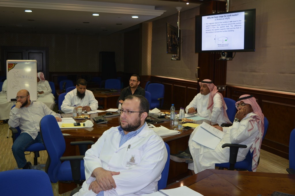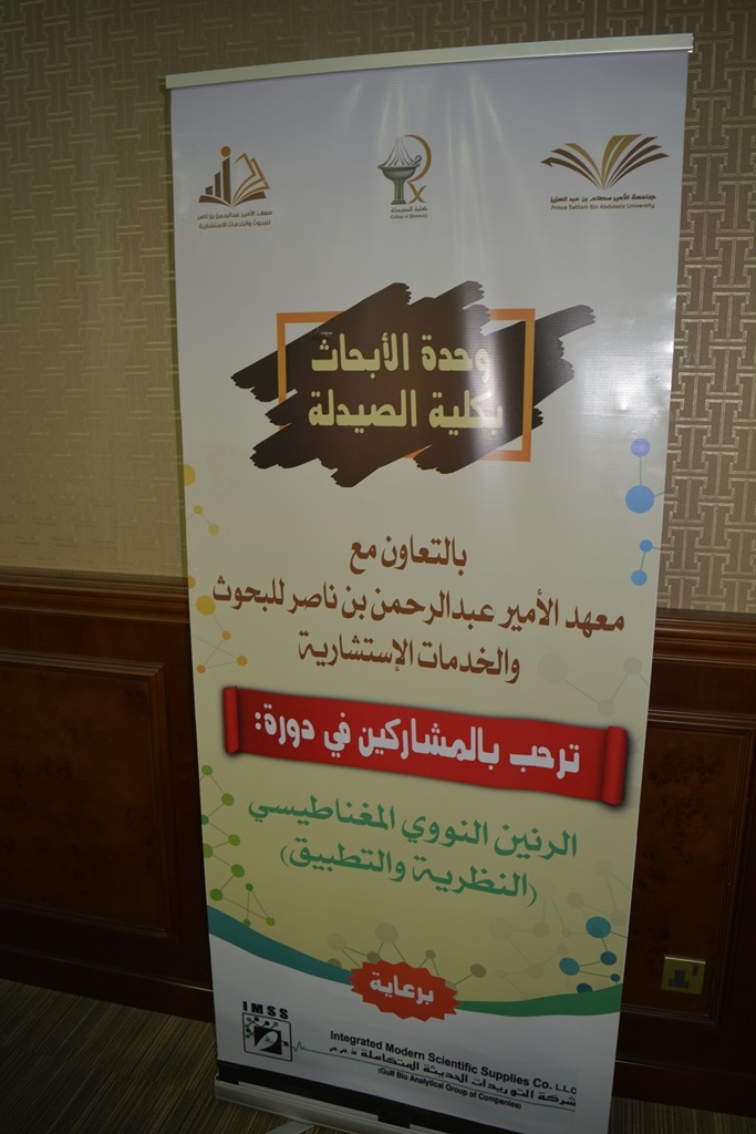 اختتمت وحدة الابحاث بكلية الصيدلة بجامعة الأمير سطام بالتعاون مع معهد البحوث بالجامعة   دورة الرنين النووي المغناطيسي ( النظرية والتطبيق ) بقاعة كبار الشخصيات بالمدينة الجامعية يوم الأحد والأثنين 27 – 28 / 8 / 1439 ه الموافق 13- 14 مايو 2018 م , وقد قدمها عضو هيئة التدريس الاستاذ الدكتور / ماجد بن عبدالقادر أستاذ العقاقير بكلية الصيدلة , حيث تهدف هذه الدورة في تعميق فهم دور جهاز الرنين المغناطيسي كطريقة اساسية من طرق التعرف  على التركيب البنائي للمركبات العضوية , وقد تكونت الدورة من جزئيين نظري وعملي تم من خلالهما التعرف على الأسس النظرية التي بني عليها عمل الجهاز ومختلف التجارب التي يمكن أجراؤها باستخدامه وكيفية الاستفادة منها كما شمل البرنامج التعريف بالتطبيقات المختلفة للجهاز في مجال الادوية والمجالات الاخرى , كذلك تم تدريب المشاركين على كيفية إعداد العينات وتشغيل الجهاز وإجراء كافة التجارب . حيث شارك في هذه الدورة مجموعة من المهتمين من هيئة الدواء والغذاء ومن مستشفيات حكومية وخاصة ومصانع الأدوية وطلاب دراسات عليا و أكاديميين . من جانبه ذكر الدكتور / بدر بن بادي السليس  وكيل معهد البحوث للتطوير وتنفيذ الأعمال والمشرف على وحدة الابحاث بكلية الصيدلة أن هذه الدورة هي وسيلة لتعزيز وتمكين المهتمين في هذه التقنية من خلال الممارسة العملية المكثفة , وتعتبر هذه الدورة هي الاولى التي تقيمها وحدة الابحاث بكلية الصيدلة عن هذا الجهاز , وتأتي أيضا ضمن الاتفاقية المبرمة بين معهد الأمير عبدالرحمن بن ناصر للبحوث والخدمات الاستشارية  وكلية الصيدلة بجامعة الأمير سطام بن عبدالعزيز الموقعة مؤخرا . وفي نهاية الدورة قام د / بدر بن بادي السليس بتوزيع الشهادات على المشاركين .