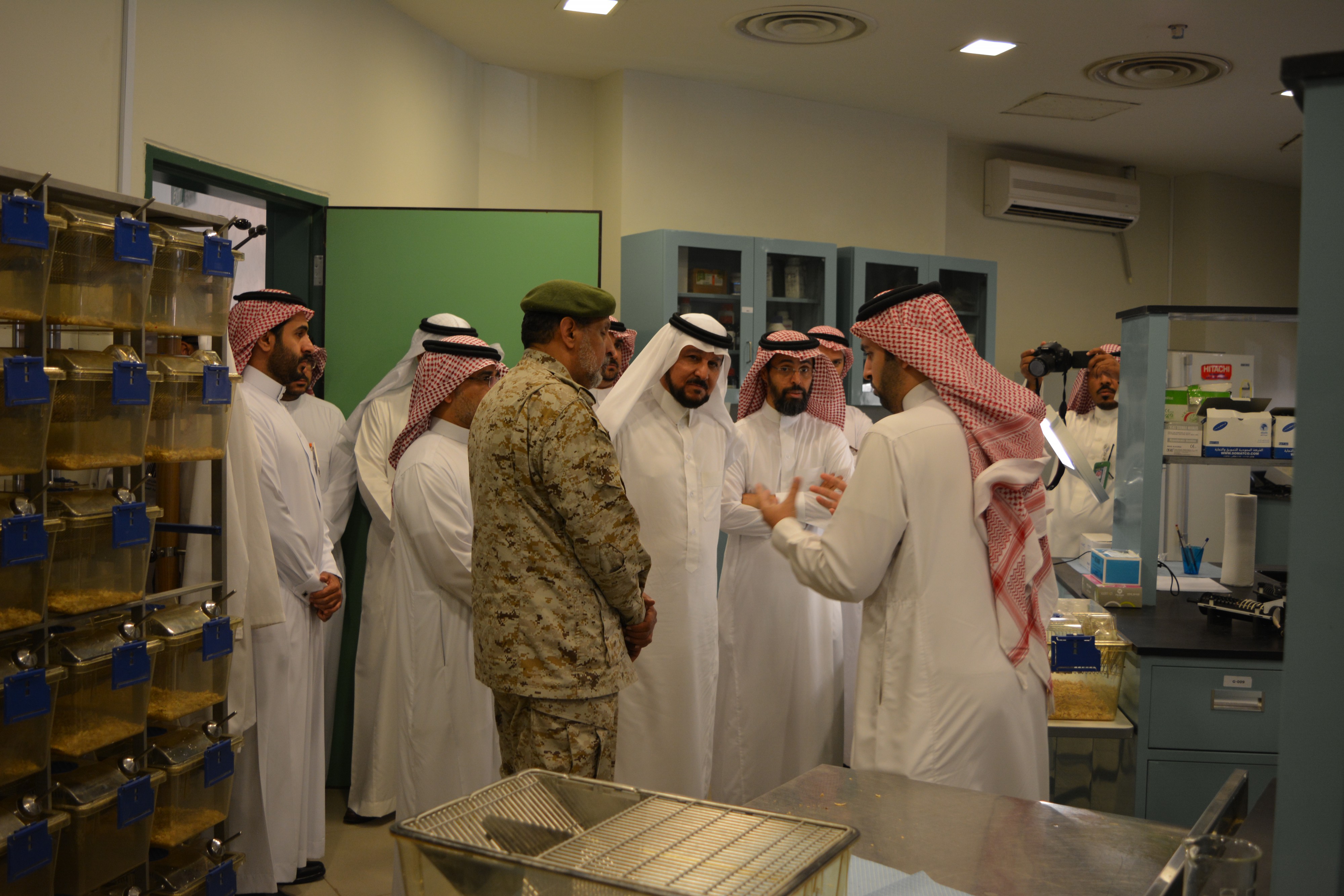 كتبه – عبدالعزيز القرناس / زار معالي مدير الجامعة الاستاذ الدكتور عبدالعزيز الحامد  يوم الخميس الموافق 1439/12/26هـ يرافقه سعادة اللواء الطبيب نامي بن فوزان الجعيد مدير إدارة مستشفيات القوات المسلحة بالخرج المختبرات البحثية بكلية الصيدلة , حيث كان في استقبالهم سعادة عميد كلية الصيدلة الدكتور أحمد بن سليمان العليوي ووكلاء الكلية وأعضاء هيئة التدريس والموظفين. وتم خلال مجريات الزيارة الإستماع إلى شرحاً مفصلاً عن ما يتألف ويتحتويه المختبرات البحثية من عدة وحدات و مختبرات مقسمة حسب الإختصاص والوظيفة العملية لكل جهاز والفوائد المرجوة منها في تعزيز خبرة ومهارة الباحث لإيجاد نتيجة علمية وتشجيع الإبتكارات والإختراعات والإسهام في تطوير الصناعات الدوائية حيث تلعب دوراً ريادياً في اثراء البحث العلمي بالجامعة . يذكر أن المختبرات البحثية بكلية الصيدلة بجامعة الأمير سطام بن عبدالعزيز تشتمل على بيئة علمية متميزة ومناسبة للباحث المبتدئ والمتمرس تتمثل في بنية تحتية متكاملة ومختبرات مجهز بأجهزة حديثة وخدمات مساندة على درجة عالية من الكفاءة وتدار الوحدة بواسطة منظومة إدارية وفنية محكمة ومرنة من خلال لجنة إدارية عليا وكادر تنفيذي عالي التأهيل.
