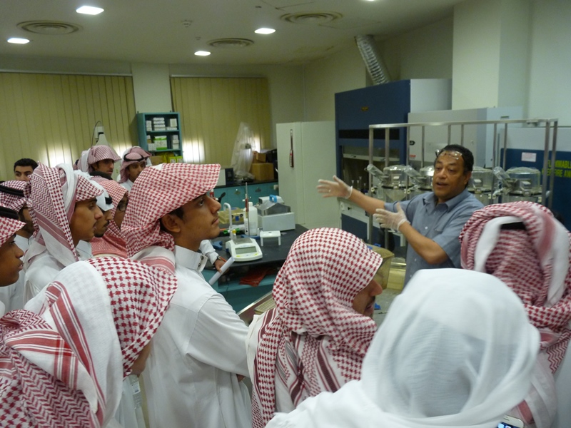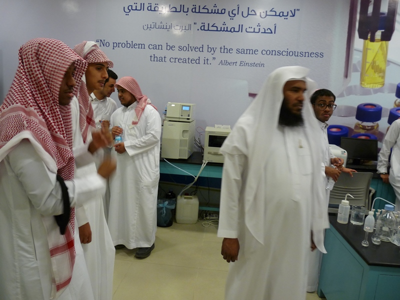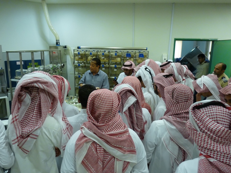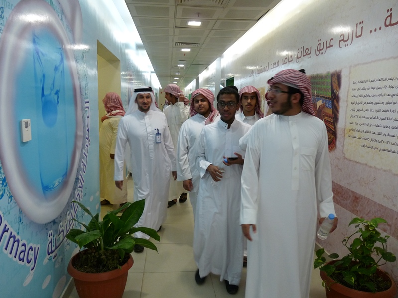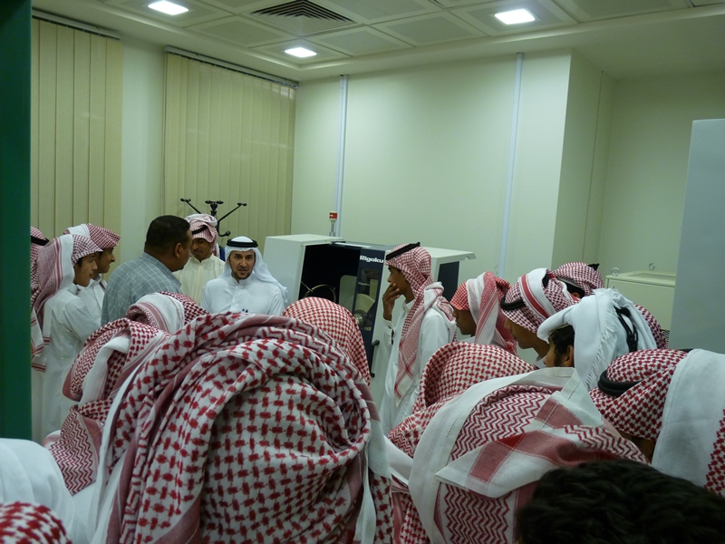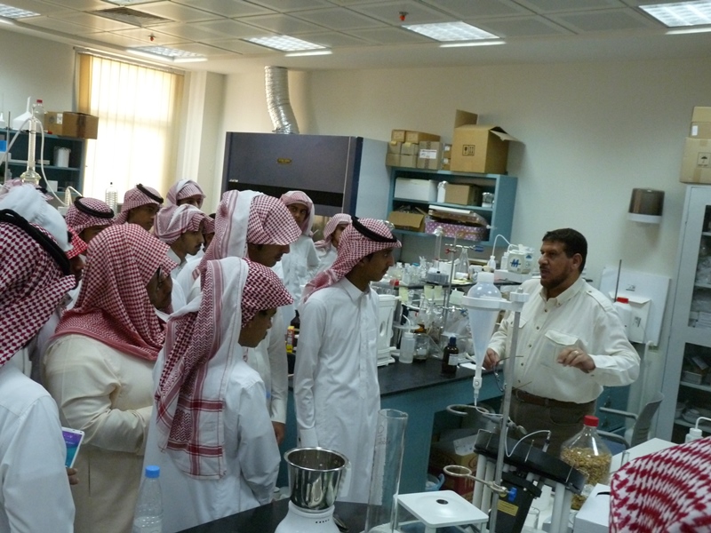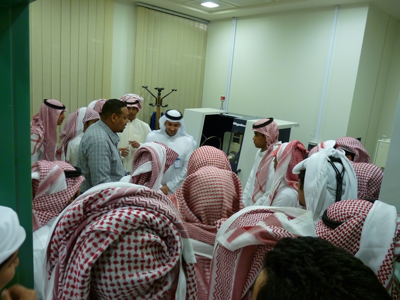زيارة ثانوية العز بن عبدالسلام لمعامل الكلية والاطلاع على أجهزة المختبرات والأبحاث اليوم الأربعاء 10/7/1436 وكان في استقبالهم سعادة الدكتور فهد بن إبراهيم الصيخان وكيل الكلية للشؤون الأكاديمية وبعض أعضاء هيئة التدريس بالكلية .