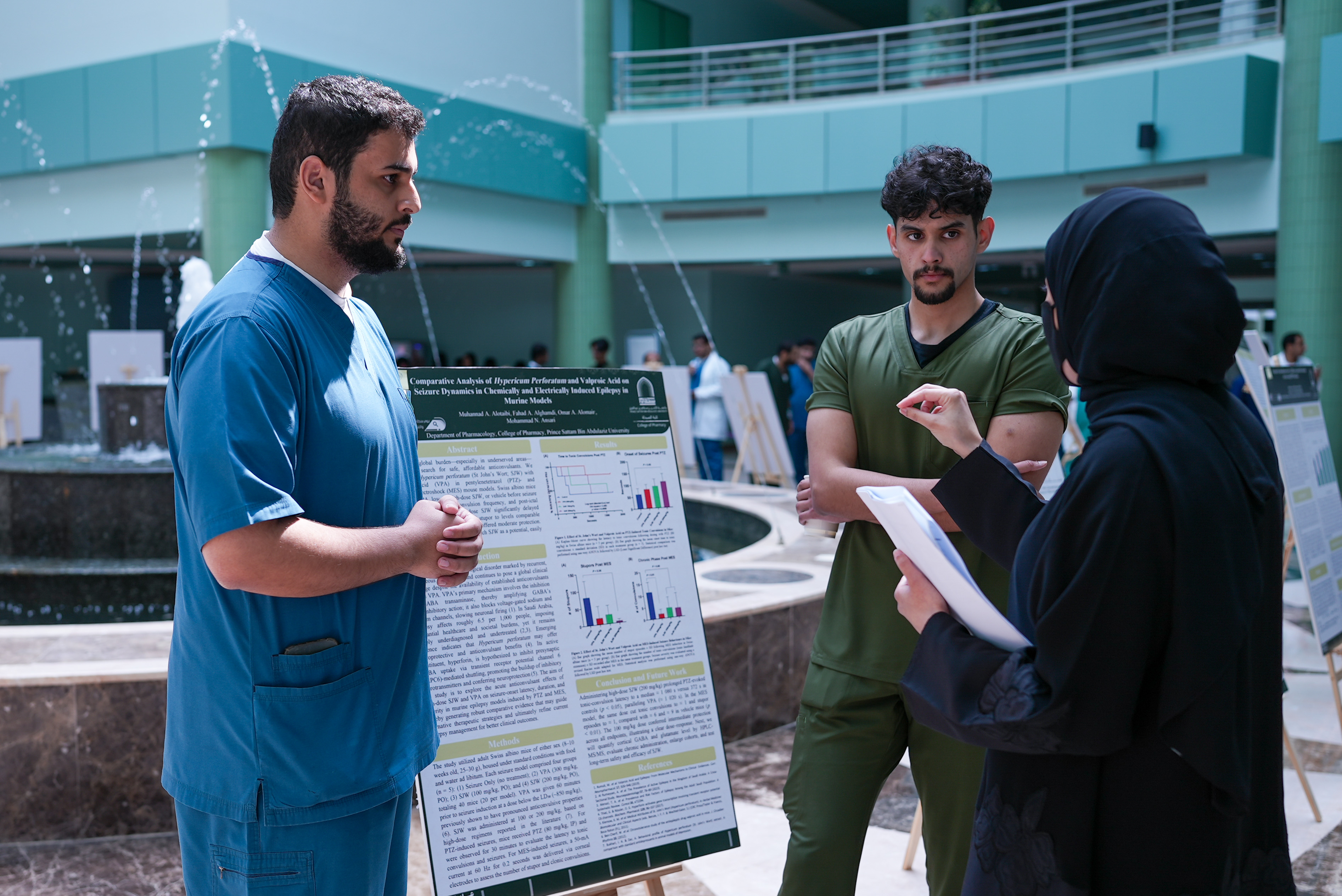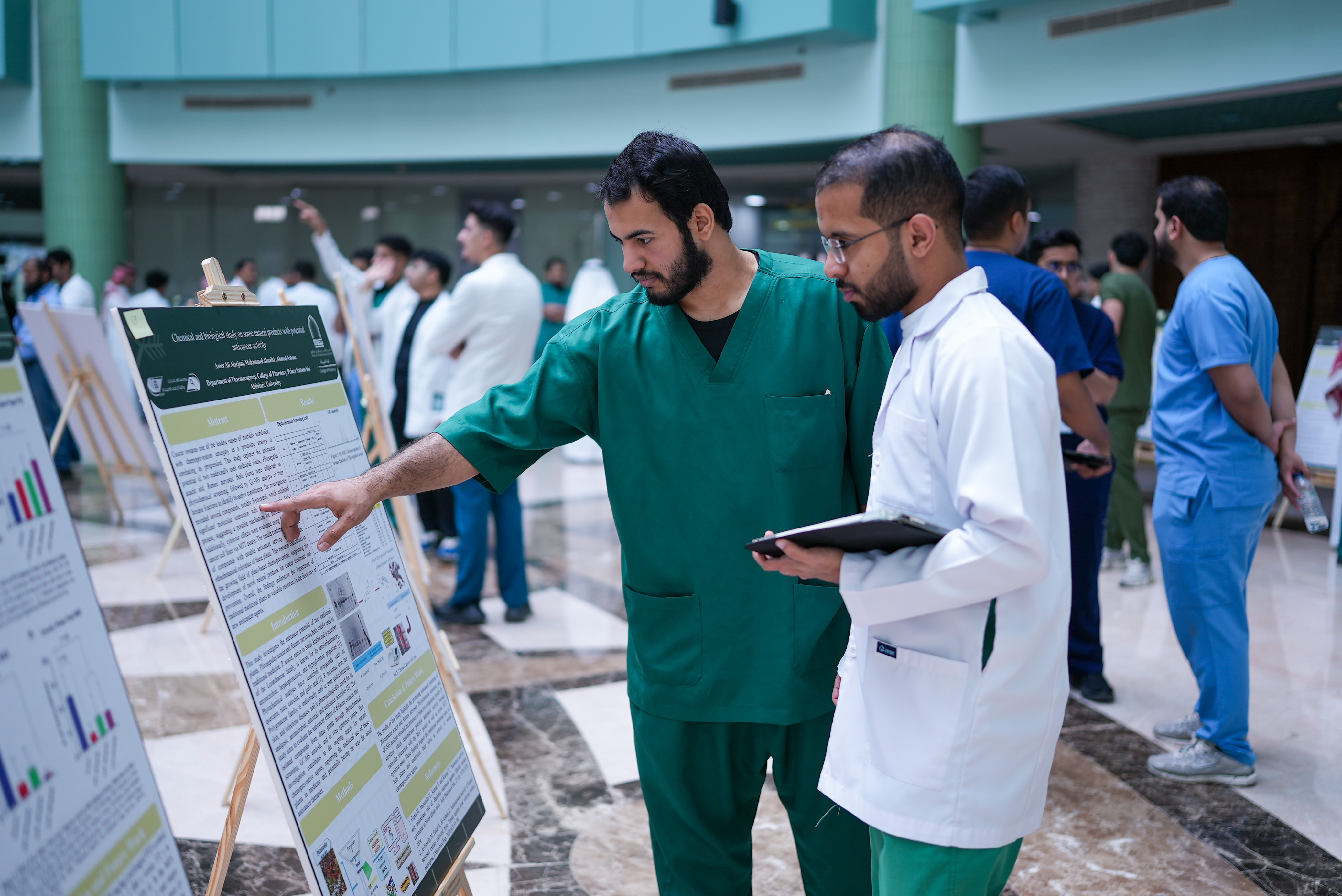 The activities of the “Sattam Day for Research and Innovation in Pharmacy” commenced today under the patronage of His Excellency the University President, Prof. Dr. Abdullah bin Abdulaziz Al-Tamim, organized by the College of Pharmacy under the theme: “Empowering a Creative Generation to Achieve National Sustainability and an Ambitious Vision.”