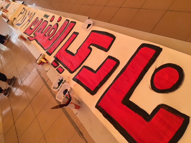 وقد اشتملت الورشة على تطبيق عملي عن فن المكياج قامت بإلقائها وتطبيقها على المشاركات الطالبة شروق العويس وهي إحدى طالبات المستوى العاشر ، الجدير ذكره أن هذا البرنامج بحقف أهداف النشاط الطلابي في صقل ودعم المواهب لدى الطالبات وتحقيق الكثير من المكاسب لهن على الصعيد المهني والشخصي ، أما الفعالية الثانية فكانت عبارة عن عمل أطول لوحة فنية والتي بلغ طولها 30 متر بمشاركة جميع منسوبات الكلية من أعضاء هيئة تدريس وطالبات وموظفات وذلك يوم الإثنين الموافق 3/6/1439ه بهدف تشجيع وصقل المهارات الفنية لدى الأفراد وبيان أنه يمكن الجمع بين التحصيل الدراسي النافع وممارسة الهواية مما يزيد مقدار الثقة والتقديرلدى الفرد نفسه بالإضافة الى انها فيها نوعا من الترفيه وإدخال البهجة والسعادة على النفس وقد لاقت الفعالية إعجاب واستحسان جميع الطالبات