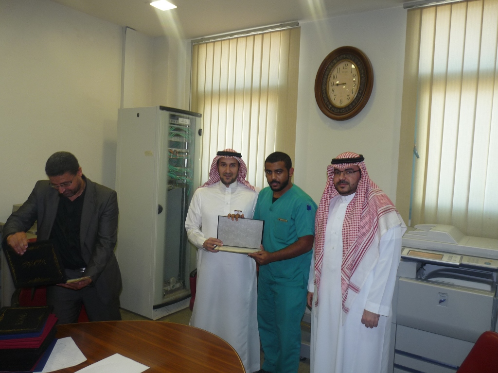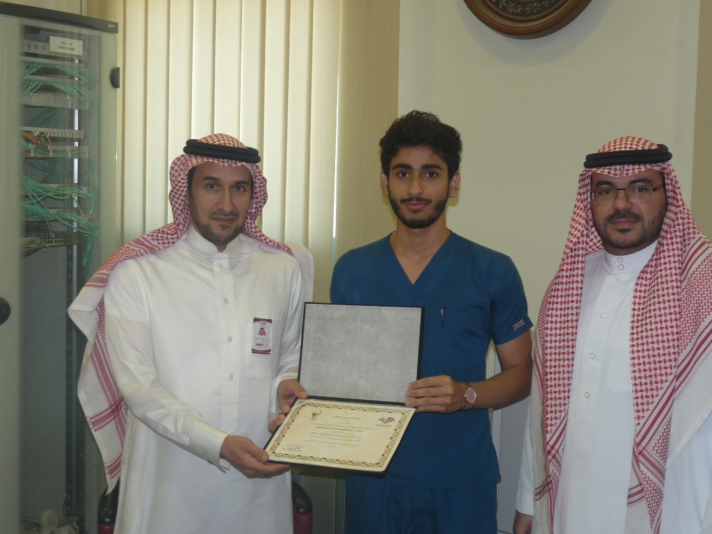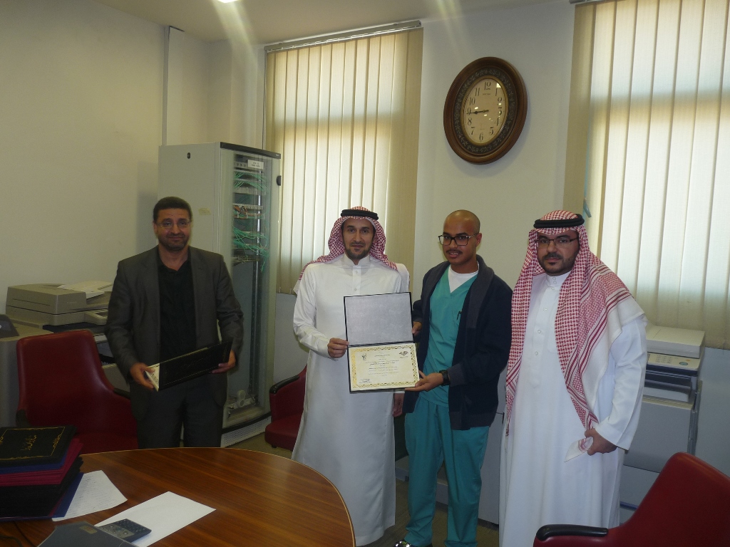 وأخيراً قام سعادة الدكتور عميد الكلية بتوزيع شهادات شكر وتقدير للمشاركين في فعالية جرعة مسكن وتمنى لهم التوفيق، وكان ذلك يوم الخميس 2/3/1438هـ الساعة الحادية عشر صباحاً.