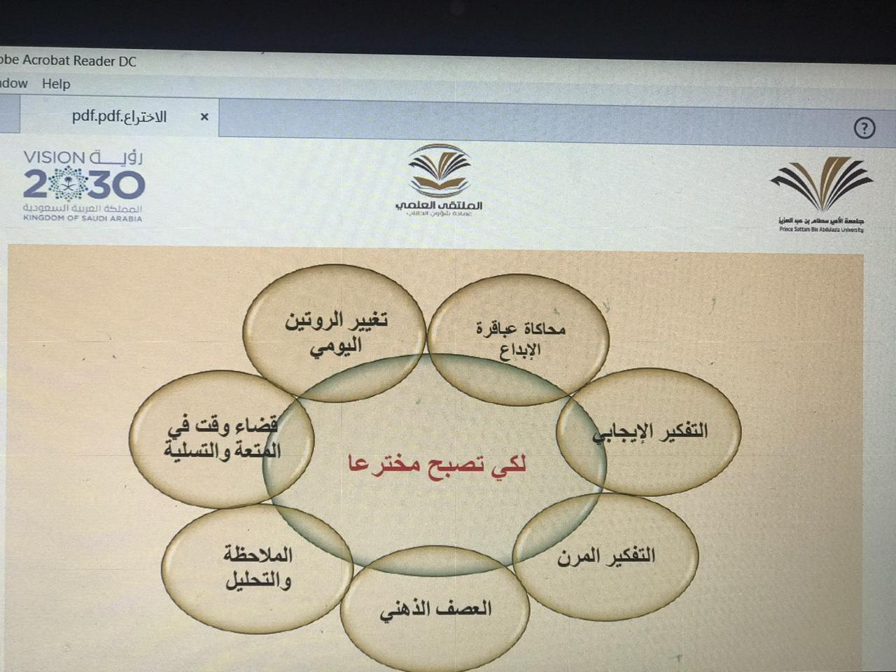 في إطار مرحلة التأهيل والتدريب لمحاور الملتقى العلمي الرابع لطلاب جامعة الأمير سطام بن عبدالعزيز وبتنسيق من اللجنة المنظمة للملتقى العلمي بكلية الصيدلة - قسم الطالبات وفي المحور الثاني: الابتكار والاختراع تم تنفيذ ورشة عمل بعنوان " كيف تصبح مخترعاّ ناجحا" قدمتها د. رانيا الجمل الأستاذ المساعد في قسم الكيمياء الصيدلية وذلك يوم الثلاثاء الموافق 8/7/1441ه بقاعة الكلية بهدف تشجيع الطالبات على رفع مهارات التفكير الإبداعي والعمليات الذهنية المختلفة التي تعمل في مجموعها على إيجاد كل جديدٍ ومُفيد في أي مجالٍ من مجالات الحياة حيث تم التعريف بسمات المخترع الناجح وكيف جعل من المشكلة فكرة لبداية اختراع من خلال تحليل المشكلة و حلها ومن ثم الاستفادة منها في تكوين اختراع جديد سواء فكرة أو شيء ملموس. كذلك تم شرح كيفية الاستفادة من خلال المشاهدة والملاحظة من كل شيء في محيطنا في تكوين فكرة وابتكار جديد يخدم ويسهل الحياة حيث نالت الورشة أعجاب الطالبات وتم الاجابة على جميع استفساراتهن .